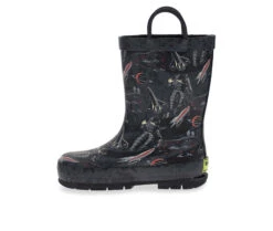 - Space monsters attack! Space fun ensues on tall kids waterproof rubber boots. Gripping no slip soles in fun dark shades with coordinated top outer sole detailing and double pull handle for easy on/off. Removable, easy to clean EVA insole for added comfort.