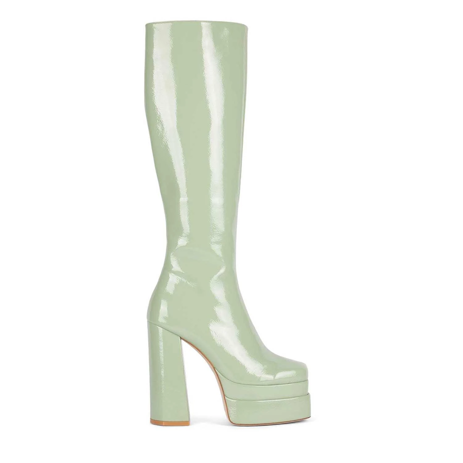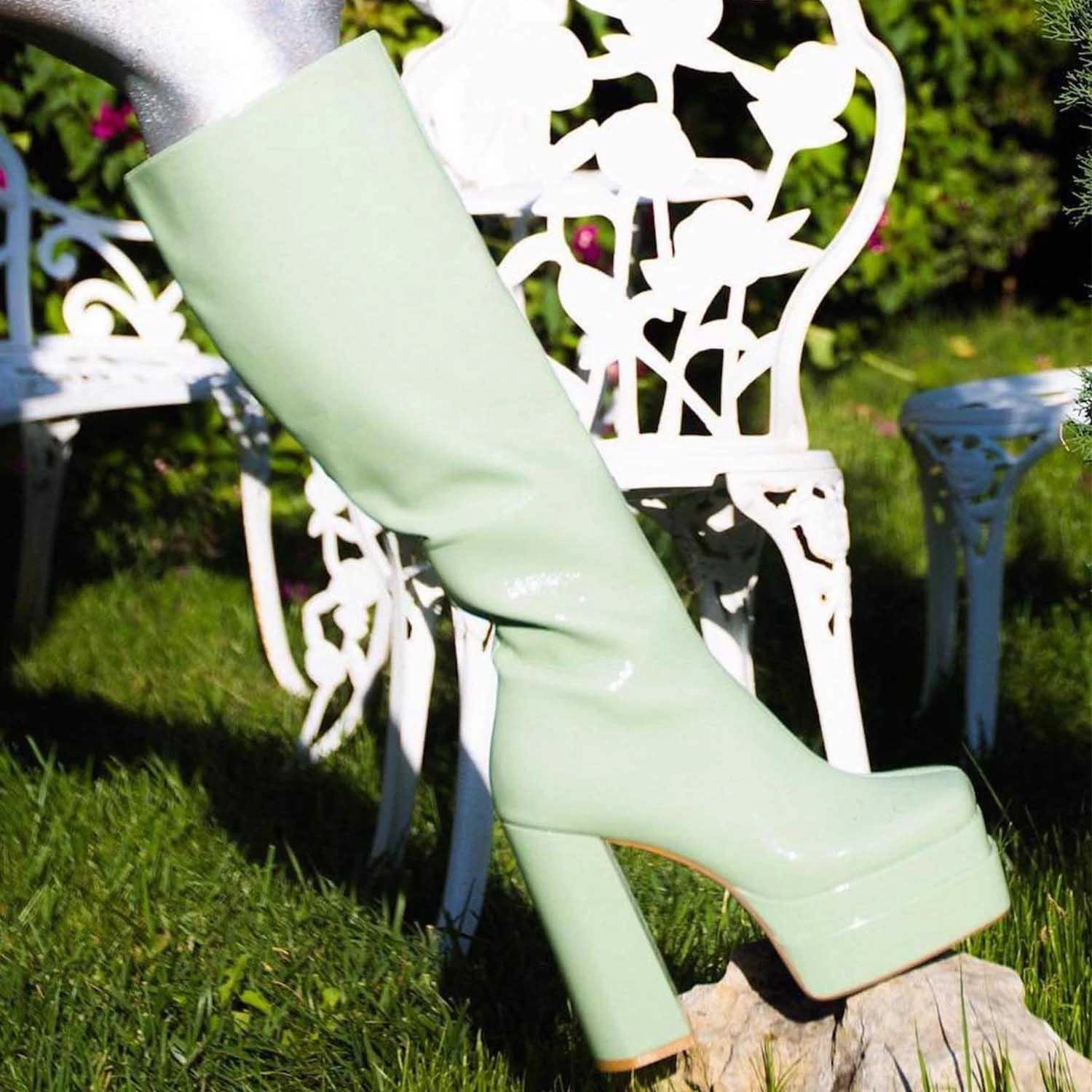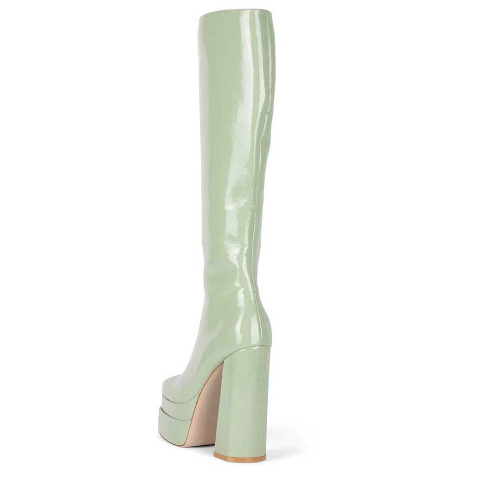 Double-stacked platform knee-high boot