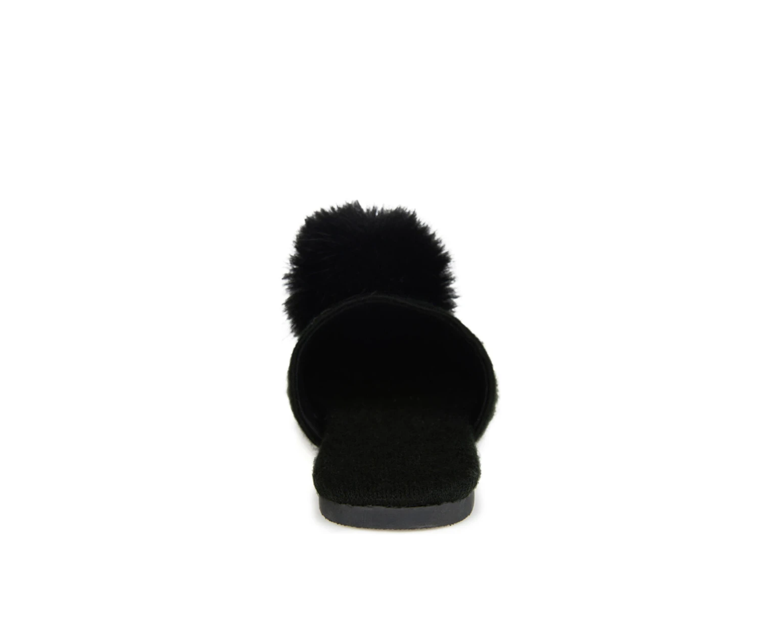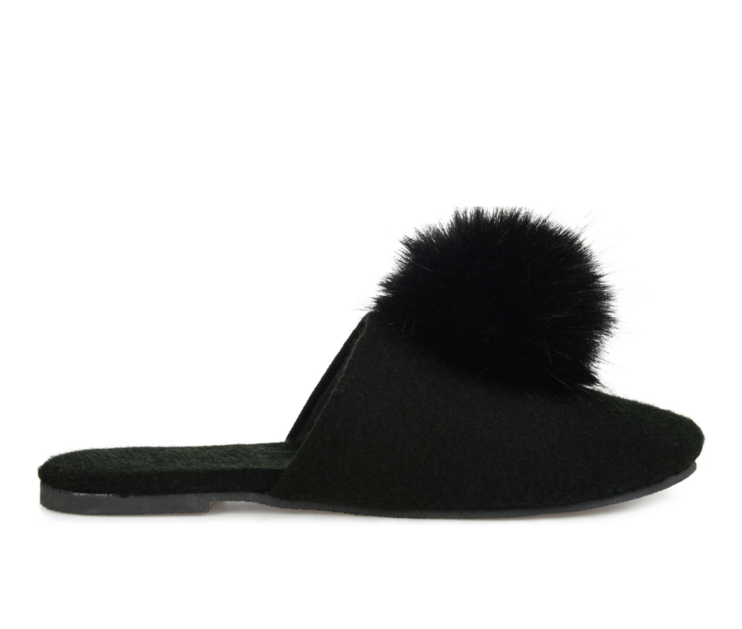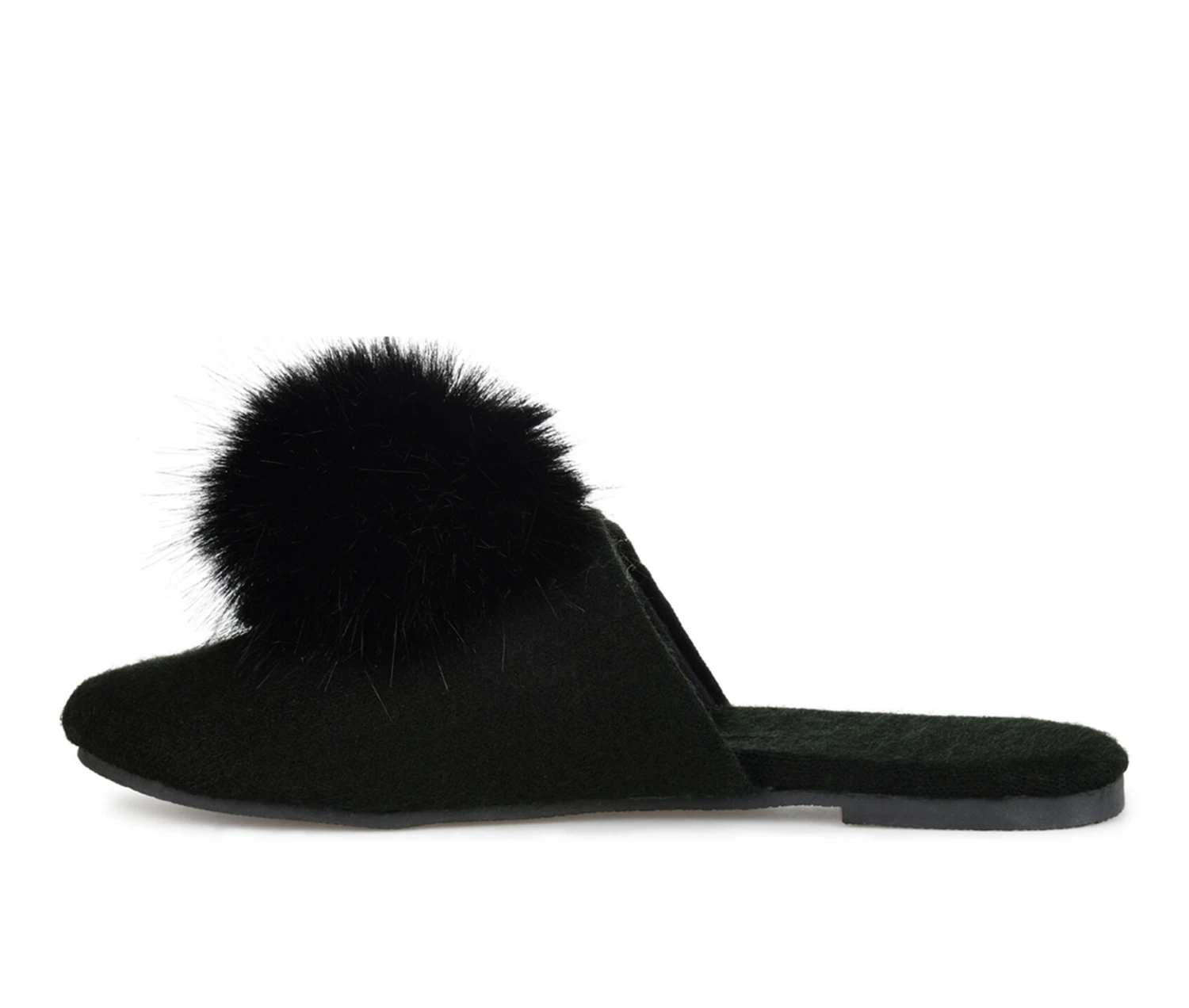 - A pompom accent lends a playful look to this backless slipper. The Nightfall by Journee Collection is a warm fabric slipper with a round-toe silhouette. This lightweight design is finished with a durable outsole and an oh-so-soft cushioned footbed.