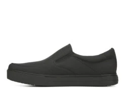 - Slip-on work shoes for men that stay comfortable all day long. PERFORMANCE TESTED: In independent lab testing, our mens work shoes beat industry average for comfort and cushioning. Oil-resistant, slip-resistant Lock Step Outsole™ meets SATRA TM63 and TM144 standards. Passed additional surface testing for vinyl tile, eurotile, and steel plate. MATERIALS: Manmade upper. FIT: Slip-on fit for easy on/off. INSOLE: Memory Foam anti-compression insole, vented sock for breathability, Dri-Lex® moisture-wicking lining, and Aegis Microbe Shield® with anti-microbial linings. MIDSOLE: Reduces foot pressure, absorbs shock, and moves with your foot. MOVEMENT: Lightweight construction with amazing flexibility. STYLE: Mens slip-on shoes for work with non-marking rubber outsole.