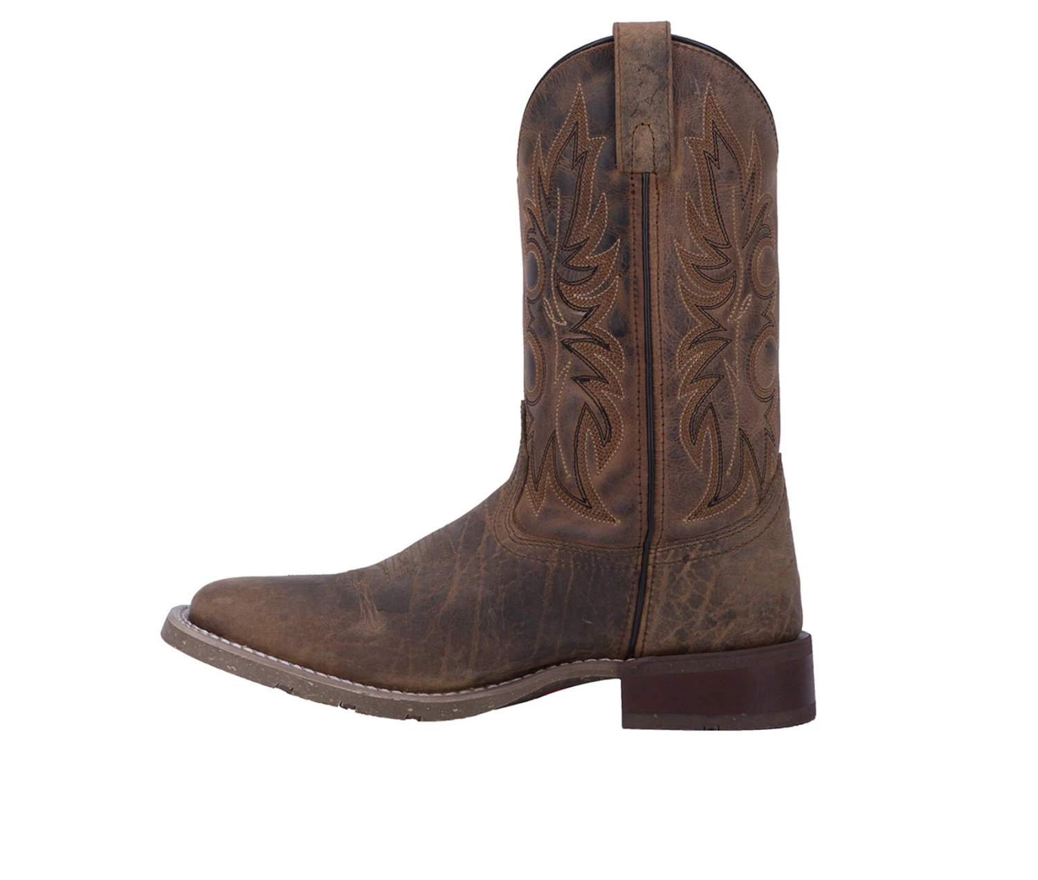 - Free your Western side with the Laredo Durant leather boot. This casually handsome boot is crafted with genuine leather, a distressed finish, and classic Western stitching on the shaft. The Durant also features a removable orthotic insole for all day comfort and a Cowboy Approved II outsole that provides traction, stability, and support with every step.