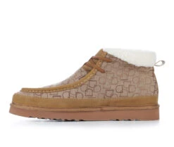 - Durable fabric upper with synthetic suede details and Sherpa fabric collar