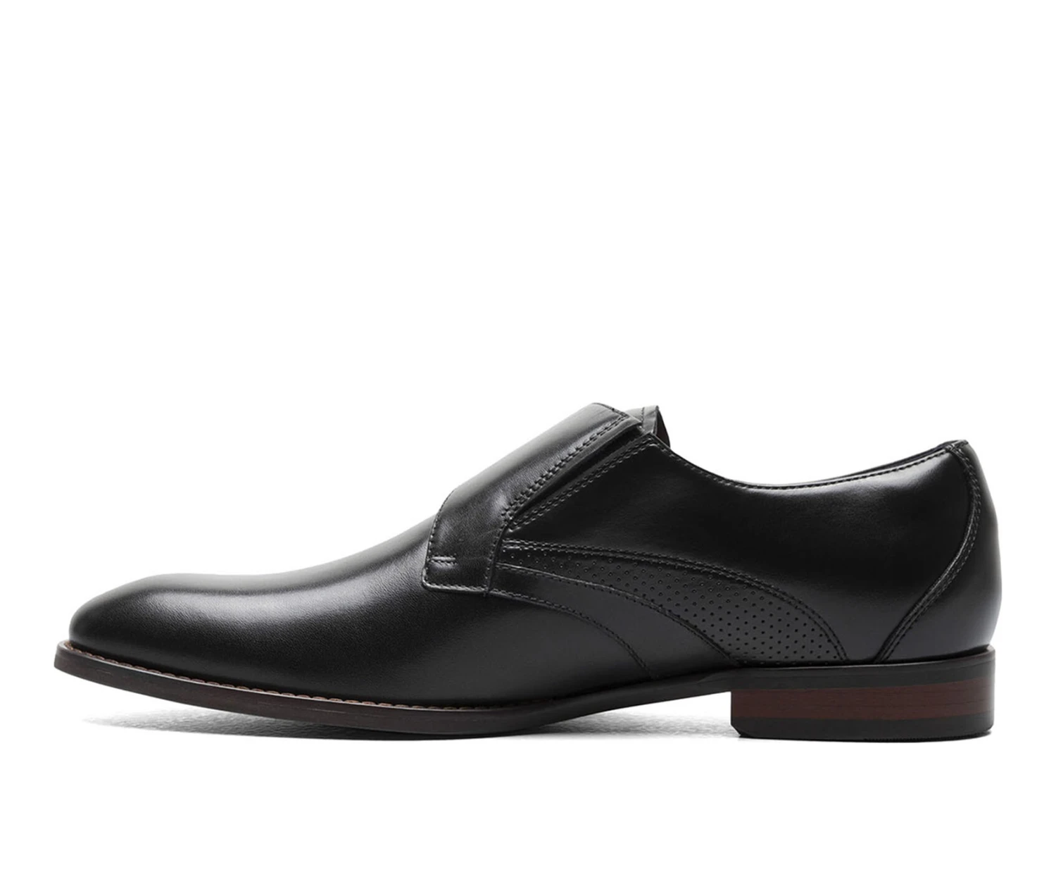 - The Stacy Adams Plain Toe Monk Strap is a stand out for its rich leather upper with elegant stitching and perfing details. The versatile design is complemented by the comfort of our Red Zone removable footbed and durable rubber sole.