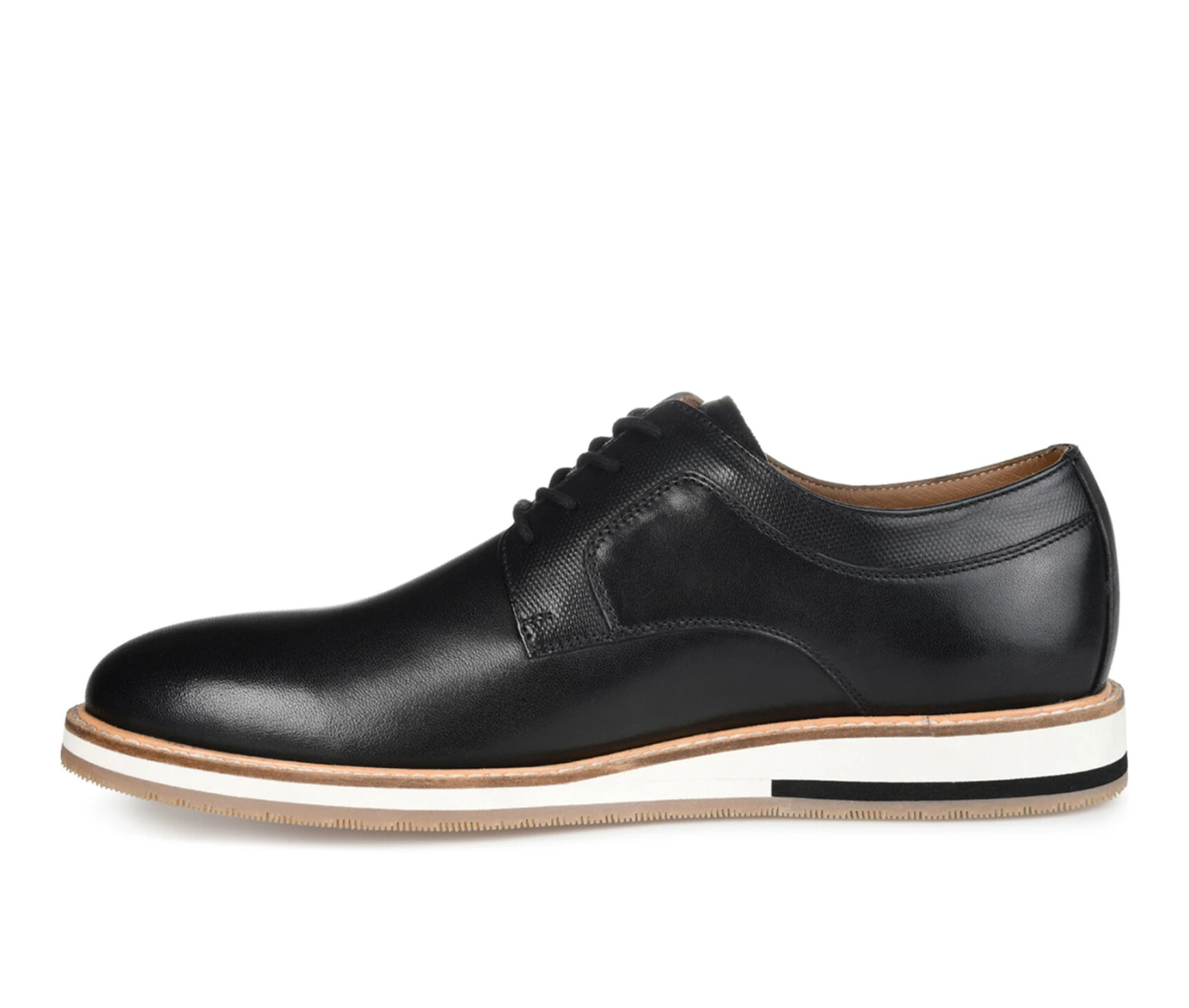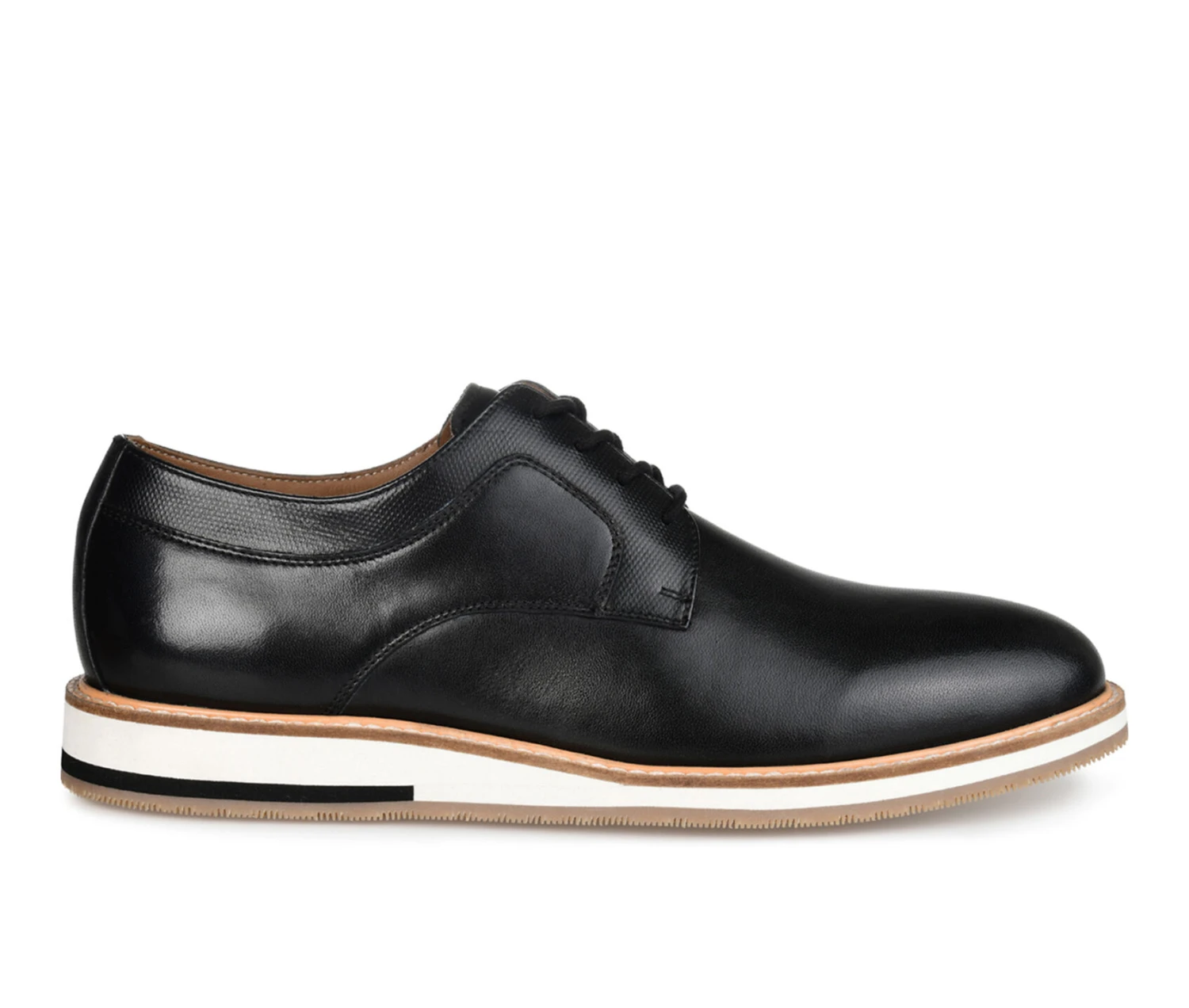 - Step up your shoe game with this versatile Glover wide-width derby from Thomas & Vine. The classic lace-up design, embossed leather accents, and genuine leather construction give you an easy but refined style. The 8 mm Tru Comfort Foamâ„¢ insole and padded tongue give added comfort, while the lightweight EVA sole offers cushioning and support for all-day wear. This derby shoe is perfect for dressing up or down, making them a must-have in your rotation. Pair them with chinos and a button-up shirt for a dressed-up look or jeans and a t-shirt for a laid-back vibe.