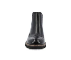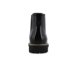 - Introducing the Hogan ankle boot by Vance Co. Crafted with premium vegan leather, these boots offer both style and comfort. Featuring a convenient pull-on design with chelsea stretch gore, they are easy to slip on and off. With a 12 mm Tru Comfort Foamâ„¢ insole and a 1 1/4 – inch block heel, they provide optimal support. The round-toe shape and wingtip detailing give it a classic finish.