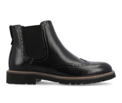 - Introducing the Hogan ankle boot by Vance Co. Crafted with premium vegan leather, these boots offer both style and comfort. Featuring a convenient pull-on design with chelsea stretch gore, they are easy to slip on and off. With a 12 mm Tru Comfort Foamâ„¢ insole and a 1 1/4 – inch block heel, they provide optimal support. The round-toe shape and wingtip detailing give it a classic finish.