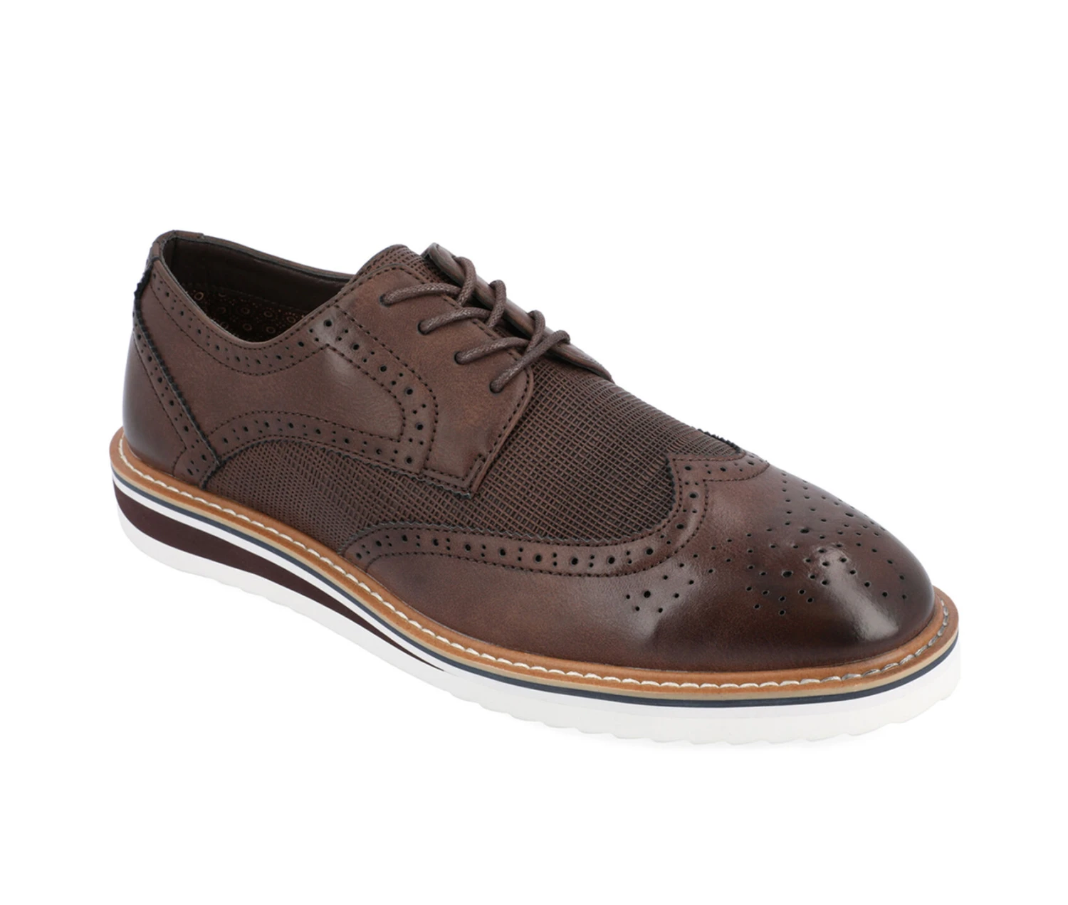 - Step up your style game with the wide-width Warrick derby shoes from Vance Co. The lace-up closure, round toe, and contrasting embossed textures add style to any outfit for work down to a dinner party. The 4 mm Tru Comfort Foamâ„¢ insole keeps your feet comfortable throughout the day, while the lightweight, flexible EVA outsole gives you traction and durability. With high-quality vegan leather, these shoes are the perfect addition to give your wardrobe a new look.