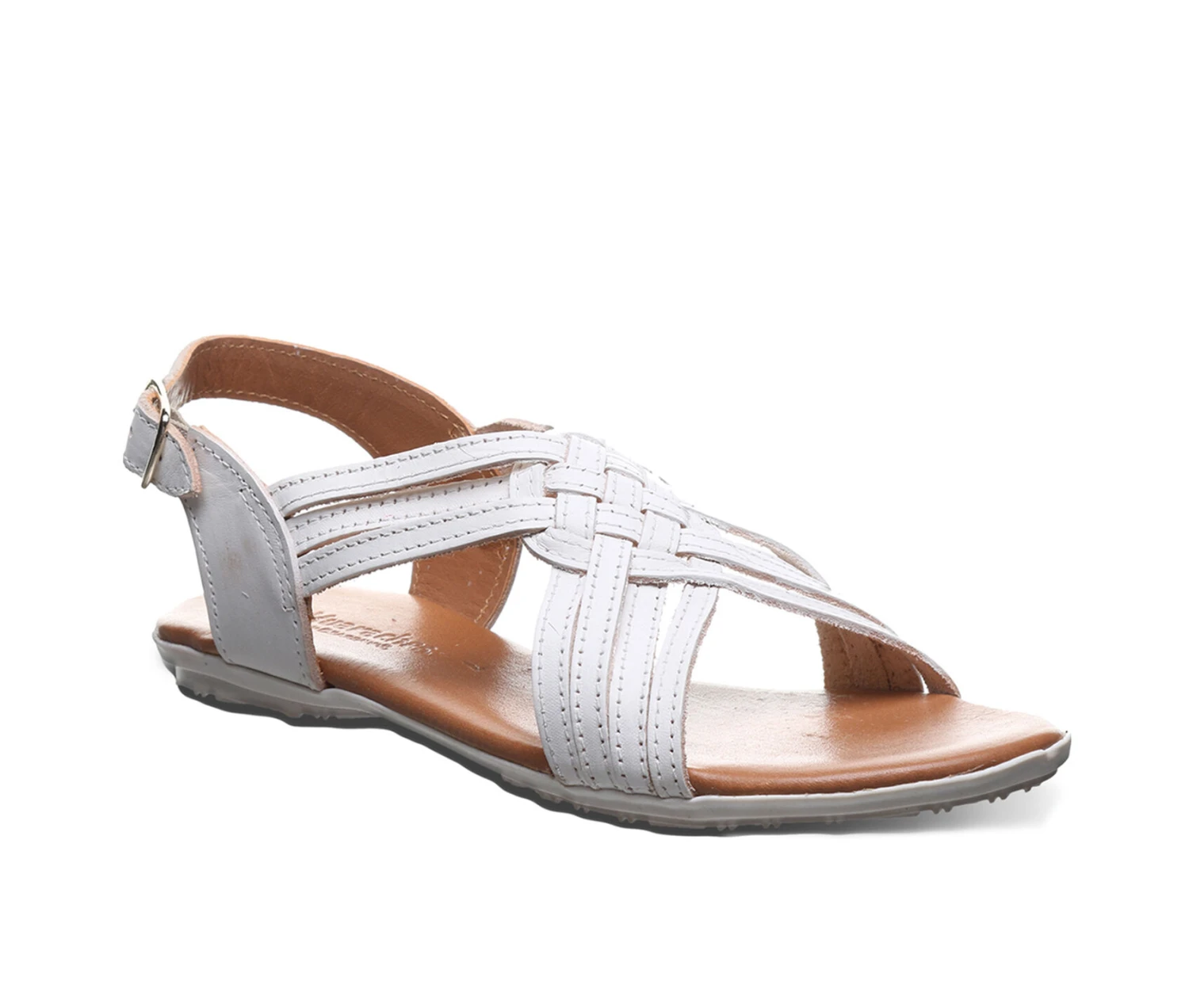 - Feeling pretty in a peep-toe! The braided leather detail on these stylish summer sandals will effortlessly complement your favorite sun dress or pair of shorts. These trendy flats keep the comfort with a cushioned leather footbed and adjustable buckle strap for an ideal fit.