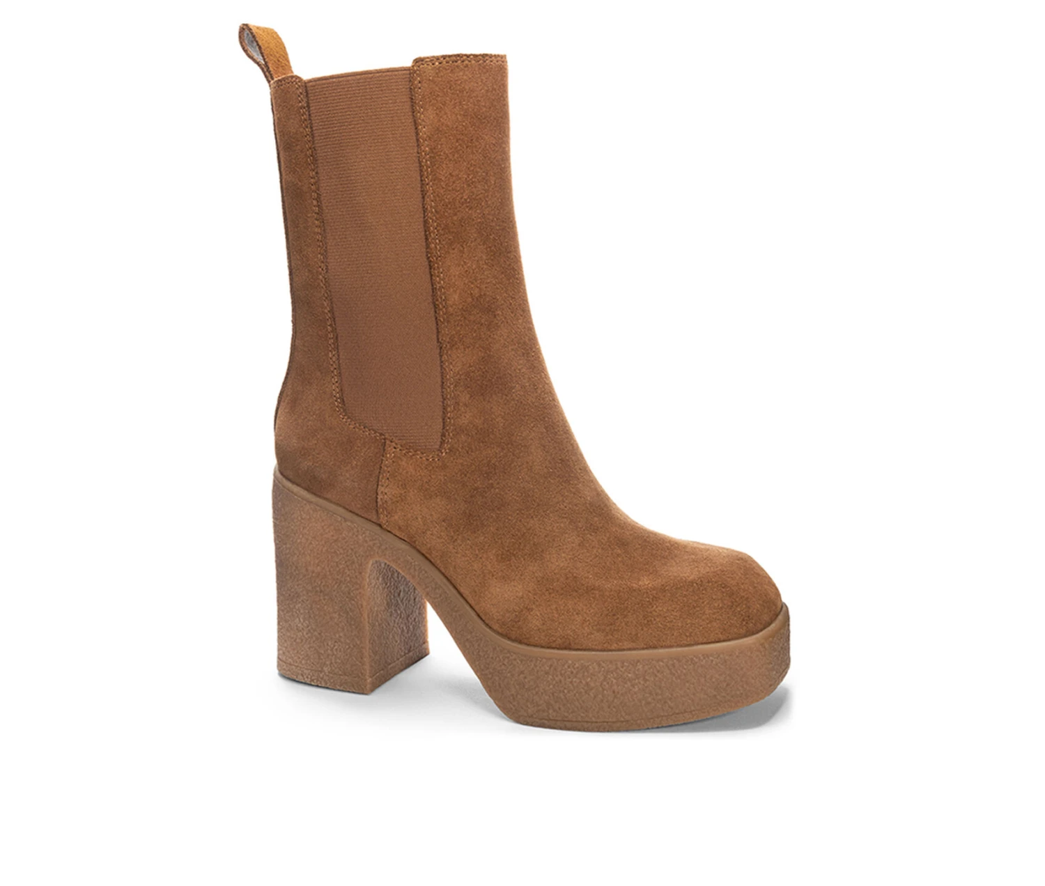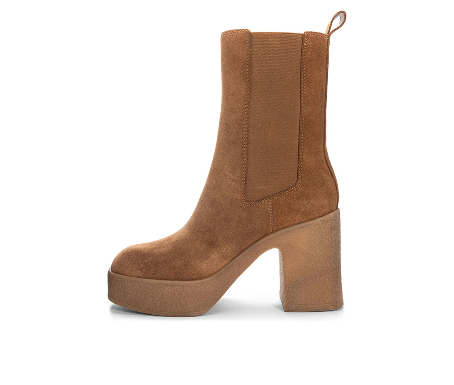 - Chelsea high heeled platform, lug sole slip on bootie