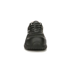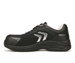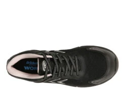 - Work shoes for women with cool style and comfort. PERFORMANCE TESTED: In independent lab testing, our shoes beat industry average for comfort and cushioning. Oil-resistant, slip-resistant Lock Step Outsoleâ„¢ meets SATRA TM63 and TM144 standards. MATERIALS: Majority leather, balance manmade. FIT: Lace up front with padded collar and tongue. SUSTAINABLE COMFORT: Anti-microbial, anti-odor Insole Technology with anatomical gel cushioning, comfort & support. MIDSOLE: High-rebound midsole reduces foot pressure, absorbs shock, and moves with your foot. MOVEMENT: Lightweight, flexible construction moves with you. STYLE: Womens composite safety toe sneakers with stitch detailing and non-marking rubber outsole. CONSCIOUSLY PACKAGED: This style is shipped in a sustainable 1-piece box made with recyclable materials & soy-based inks. With a composite cap toe for extra protection, you can work it with confidence in this sleek womens sneaker.