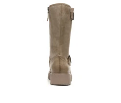 STYLE: Lightweight moto boot with a soft square toe, strap and buckle details, and 1 and 1/4 inch platform sole.