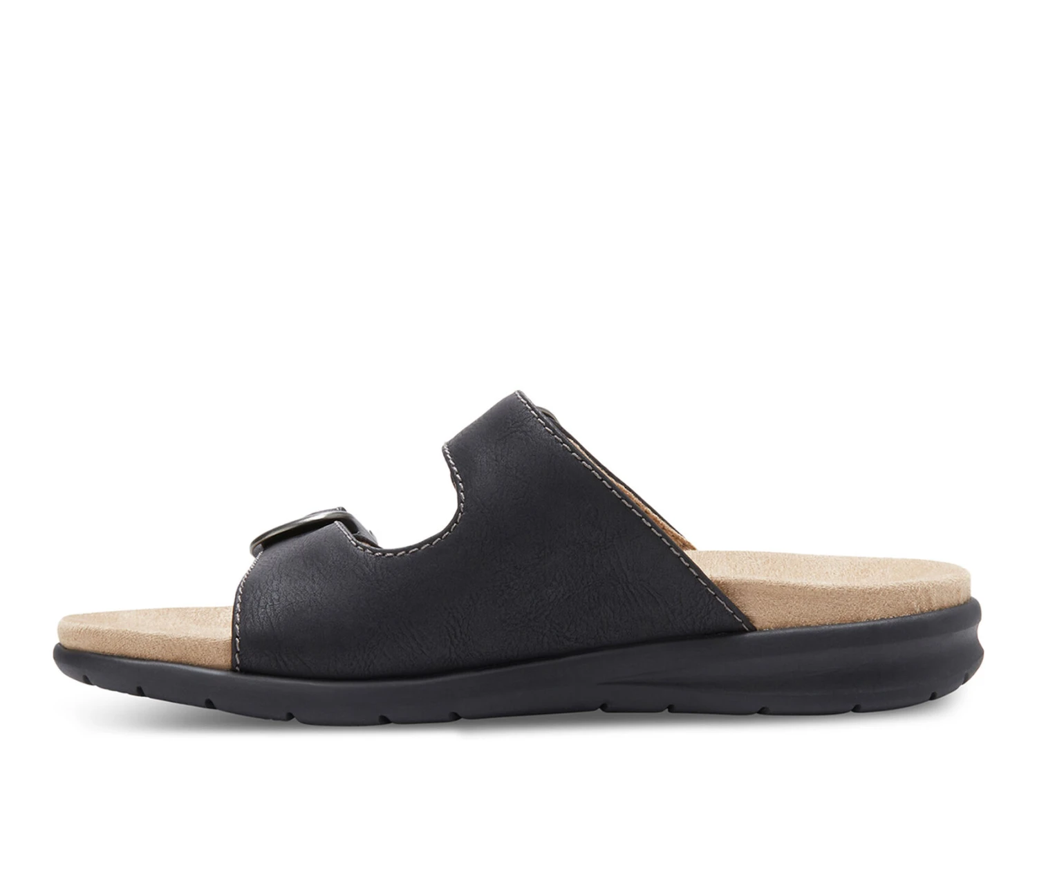 - The super comfy Avery slide features adjustable straps for a custom fit. Synthetic upper with a soft microfiber fabric lining for barefoot comfort. Adjustable strap and buckles provide a custom fit. Cushioned fabric-lined insole for all-day comfort. Durable, shock absorbing EVA outsole. Heel Height: 1”.