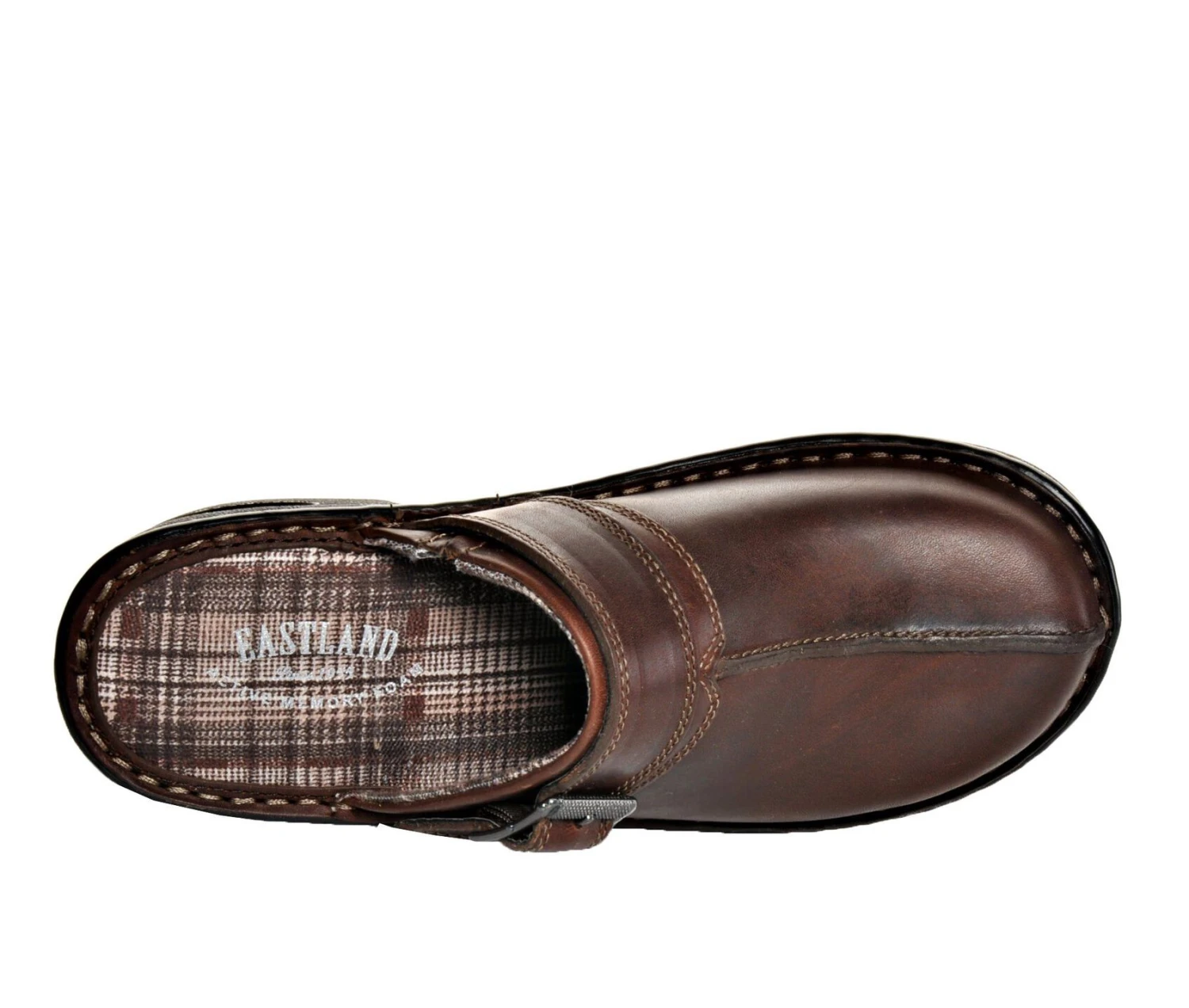 - Add versatility to your wardrobe with the Eastland® Mae! These stylish leather clogs have an easy slip-on design with strap and buckle accents for added style. Pair the Mae by Eastland® with your favorite dress or pants for solid style.