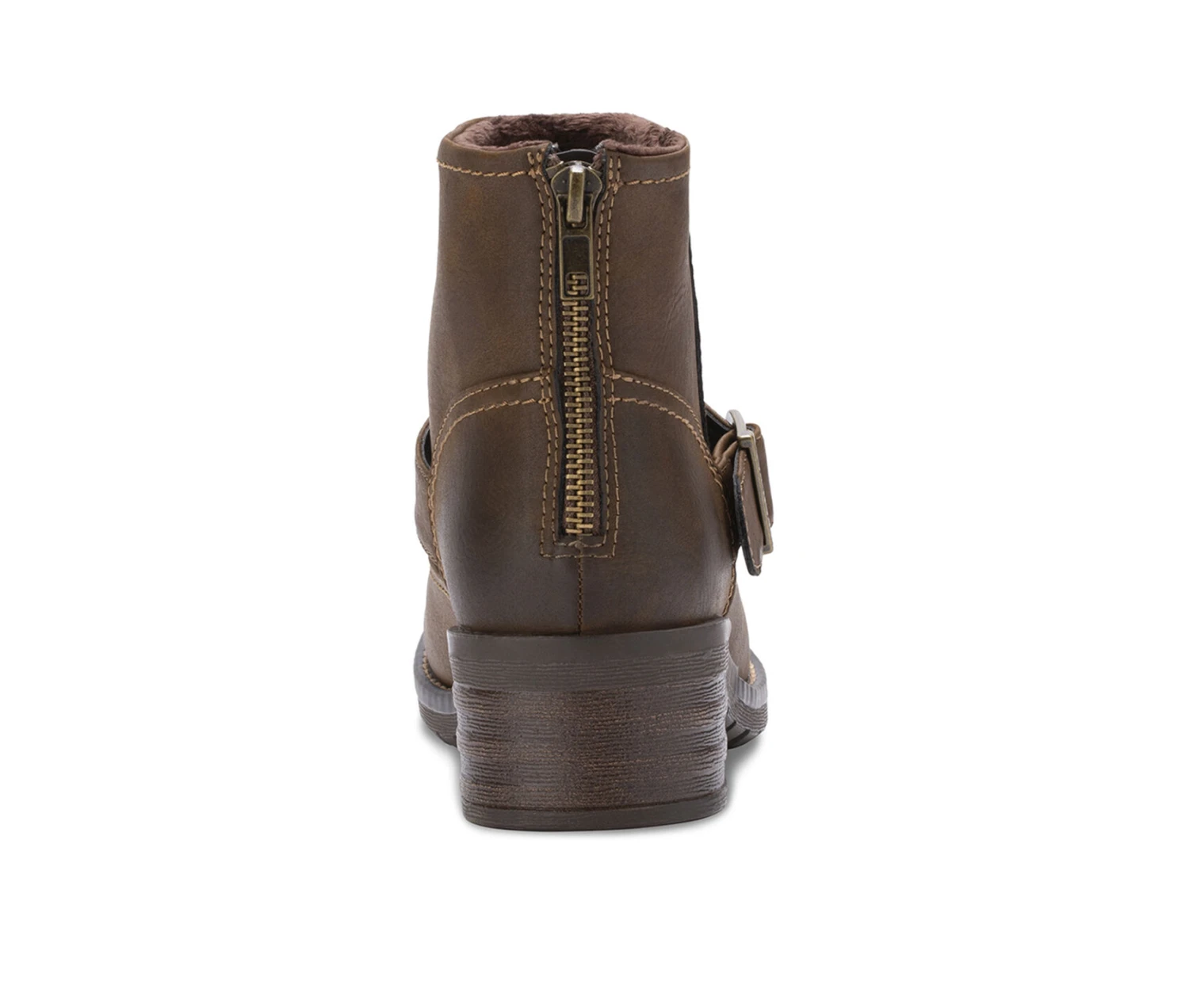 - A block heel adds stability and style to the classic lines of our Peyton buckle boot. Fabric-lined synthetic upper. Back zipper allows for easy on and off. Fabric-lined memory foam comfort insole supports and conforms to the curves of your foot. Textured TPR outsole provides great slip-resistance, durability and shock-absorbing cushioning. Boot Height: 4 1/4″. Boot Height: 4 1/4″