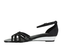 - Lucite is clearly in the fashion spotlight this season, and the Tarrah by Easy Street® features it in a stylish, low wedge silhouette with an adjustable ankle strap and delicate cross strap vamp design. Detailed in fabulous materials, you are sure to steal the show.