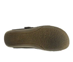- Two tone and textured slide with adjustable hook & loop fastening and shiny metal buckle detail, featuring cross over straps with cut outs, all on a polyurethane wedge outsole with heavy stitch detail.