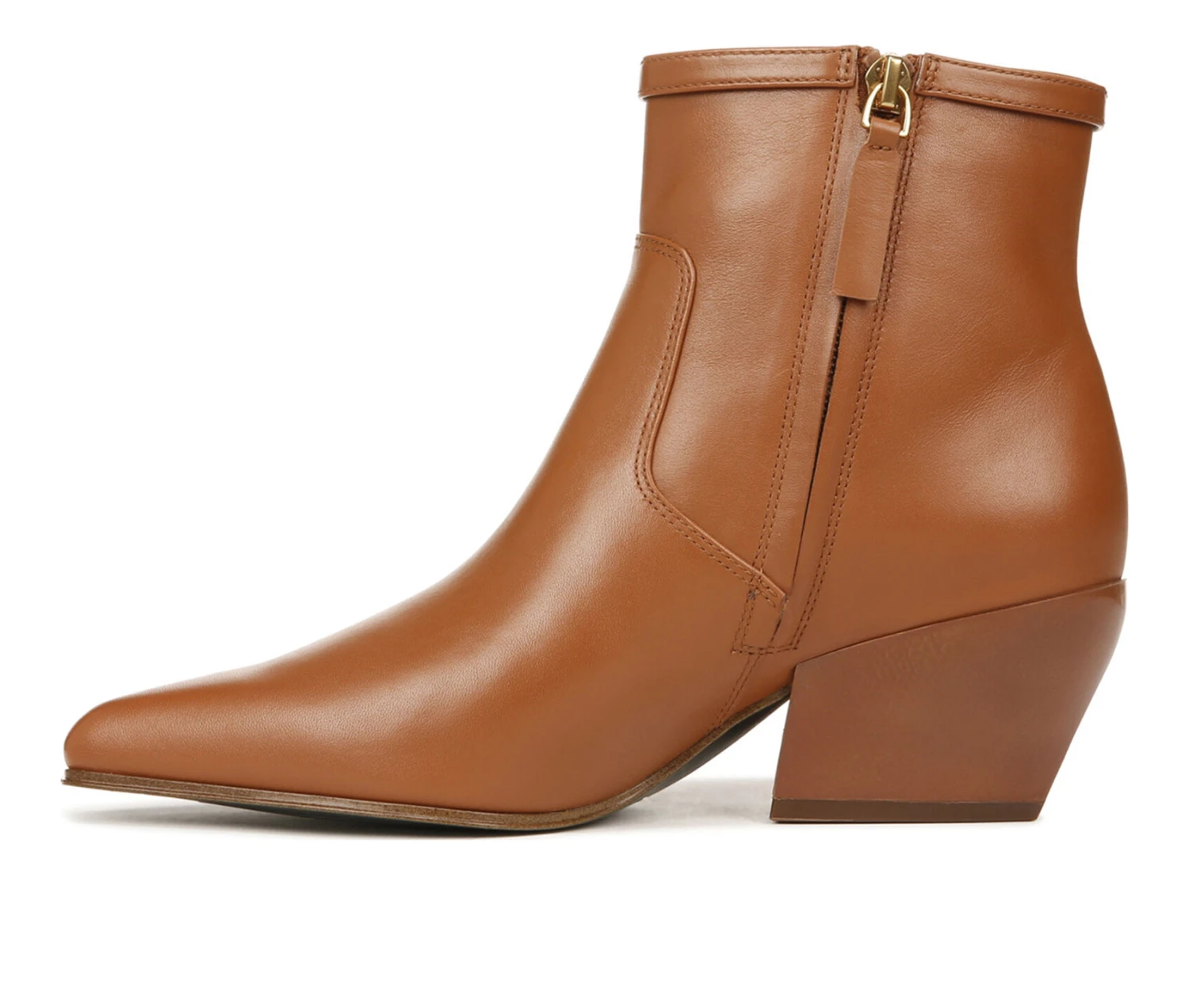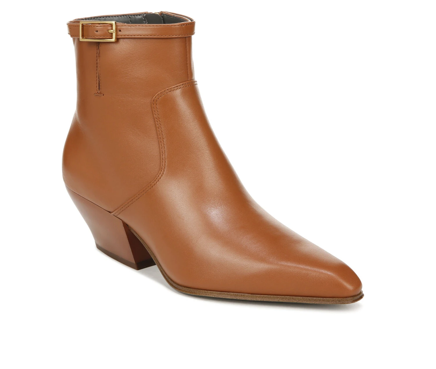 - From the sophisticated materials to the ultra-streamlined shape, every detail of these ankle boots for women defines sleek refinement. Leather upper responsibly sourced through Leather Working Group-audited factories or synthetic leather upper partially made from recycled materials or fabric upper. Partially recycled linings with soft + eco-conscious comfort. Side zip for easy on/off. Buckle detail at cuff. Square toe. 2.25 inch heel.