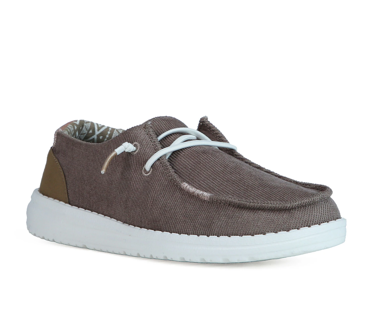 - Classic moccasin construction in easy corduroy, lined with a soft and breathable wool-blend knit. A thoughtfully designed Easy-On System features no-tie elastic laces. Built on our patented UltraLIGHT EVA outsole.