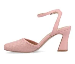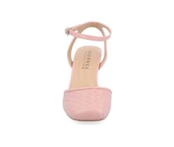 - The Moriah heel from Journee Collection will be the perfect take on a new look. Giving you all the style you need with their luxe vegan leather, textured embossed detail, buckle ankle strap, and open square toe. As a bonus, their padded insole will leave your feet comfortable for all those errands.