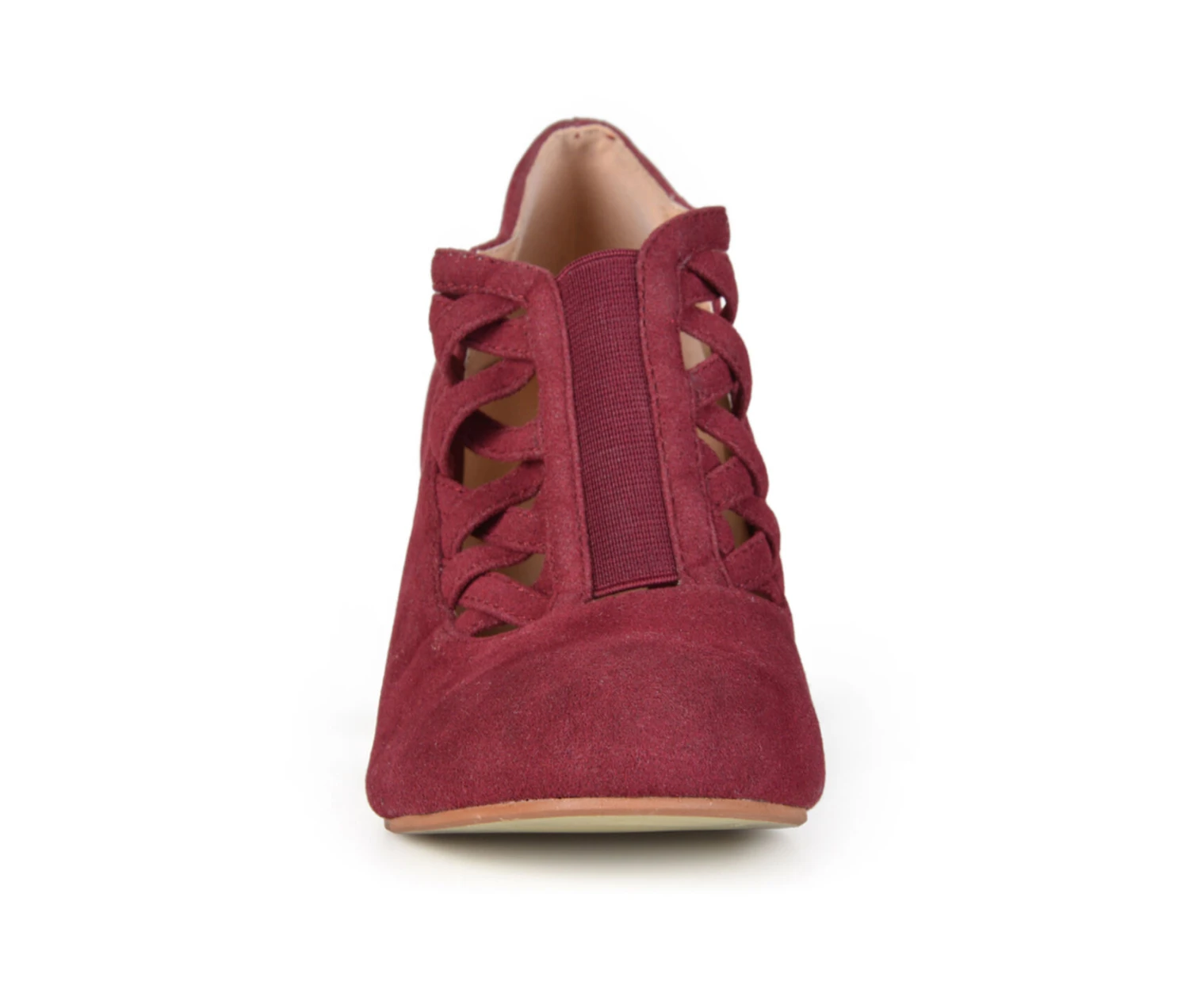 - Step into sizzling style with crisscross heeled booties by Journee Collection. These stylish shoes highlight premium faux suede uppers in a dainty bootie style. Crisscross straps are highlighted across the vamps, while small chunky heels finish the look.