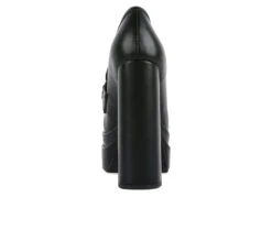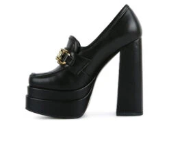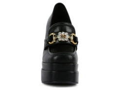 - Dress the high street babe way, even at work with these sky-high block-heeled statement women’s loafers. Made with high-quality soft PU, these loafers give support with a chunky raised platform and a lightly cushioned insole. The metal chain and stone add to the look.