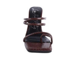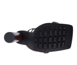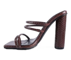 - With croc shiny patent PU, this uber stylish cylindrical high block heeled sliders are glam high. The straps have elastic details which stretch to fit and hold feet well. Has light cushioning to keep it soft. The toe ring detail on the front strap further adds to look and utility.