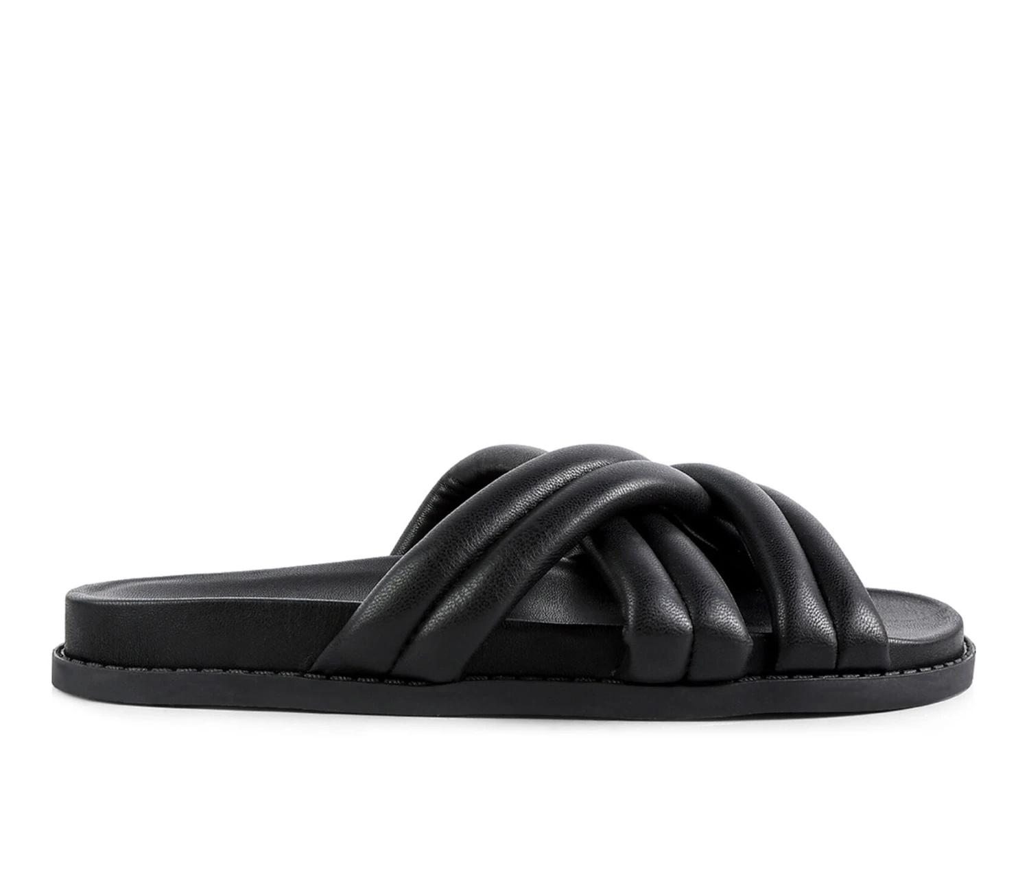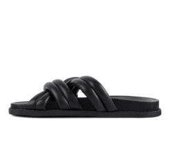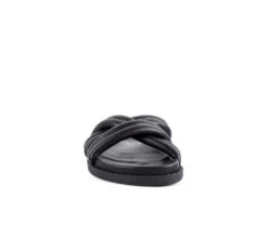 - Cushioned crisscross straps slide featuring molded footbed. Perfect footwear for going from street to beach.