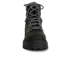 - All cute and cool vibes, the biker boots are lace-up shoes with eyelet details that amp up the whole look. The soft cushion innersole keeps feet comfortable and the ankle length provides a secure fit.