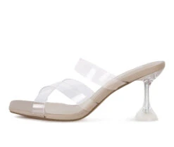 - Mid heel casual party sandals with lightly padded insole has clear straps and heel. The shoe looks beautiful on feet and has a comfortable height.