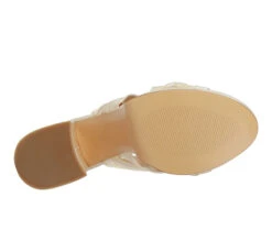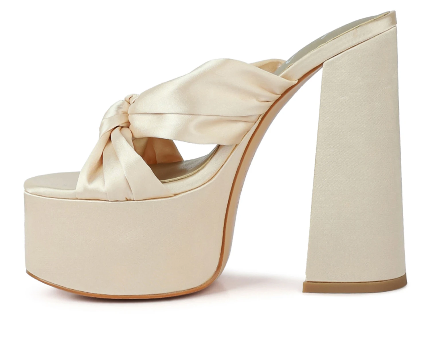 - The satin knot detail front is elegant and beautiful. The chunky platform high heels give the slip-on sandals some depth which is interesting. The sandals are versatile and can be worn to any occasion.