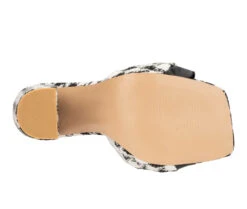 - Slide in the stylish Anthi open heels. This backless design features a houndstooth or animal print, square toe, knot décor and covered blocked heel.