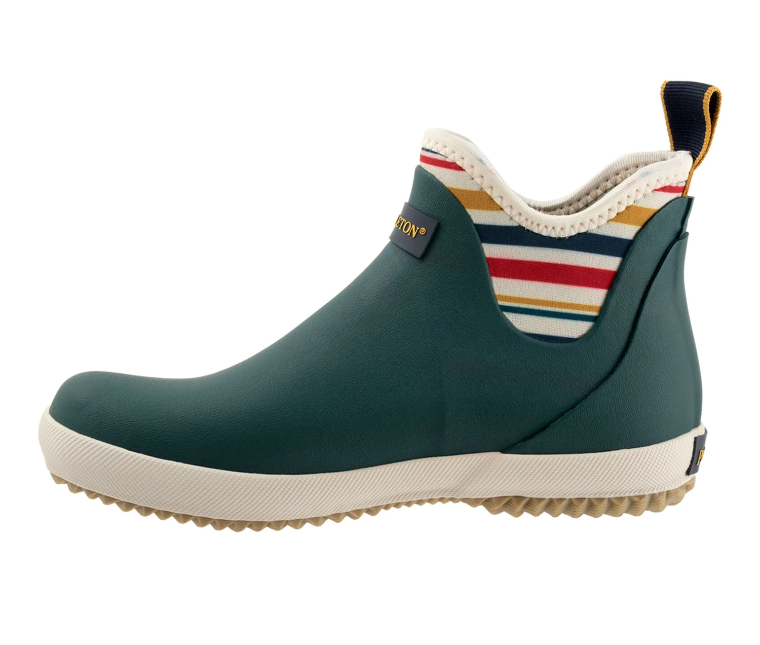 - Puddle-proof Chelsea boots constructed of rubber with no-slip soles and cushioned insoles that provide all-day comfort and support; pull-tab allows for easy on-and-off.