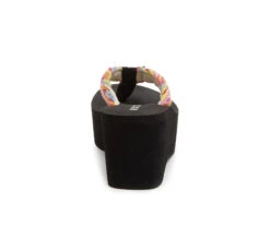 - Women’s platform Flip-flop with Rainbow multi color braided straps, EVA platform footbed for extra comfort.
